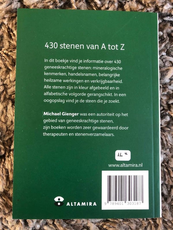 Pocketbook met soft cover vol met duidelijke kleurrijke foto's van 430 stenen met hun betekenis en werking.